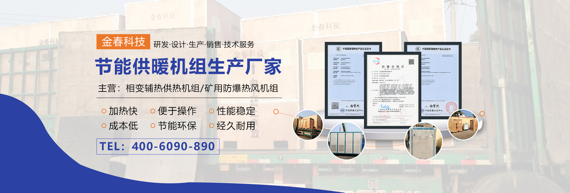 本公司專業(yè)生產(chǎn)相變輔熱供熱機(jī)組、礦用防爆熱風(fēng)機(jī)組,可代替燃煤、燃油、燃?xì)忮仩t,運行成本低,具有加熱快、熱效率高、便于操作,節(jié)能環(huán)保等特點,是新一代理想的環(huán)保節(jié)能產(chǎn)品。
